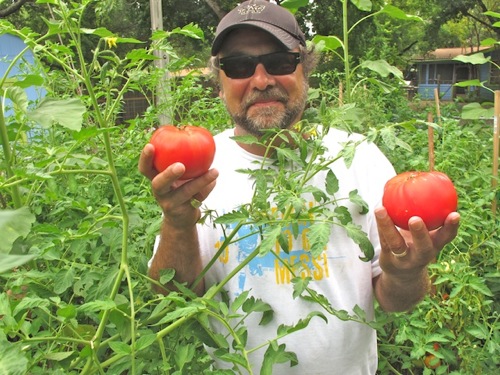 Alan and I have been friends for more than 20 years. I have always been amazed by the man’s gardening skills. Before I left his house, he filled up my cooler with 3 kinds of tomatoes, eggplant, peppers, cukes and baby ears of corn. I passed on the Mexican marigold mint, sorrel, squash, and beets he pulled out of the garden while I watched.