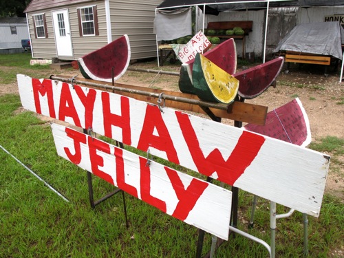 The same East Texas produce stand that had the “Big Ass Melons” sign I posted previously also had this great mayhaw jelly sign. I didn’t buy any because I loaded up on mayhaws this season to make my own jelly. I still have a gallon in my freezer. I am a little tired of mayhaw jelly though and I started thinking of other things to do with mayhaws. A mayhaw margarita came immediately to mind. But instead of trying to perfect the mayhaw syrup myself, I gave some mayhaws to Bobby Heugel at Anvil. Bobby had never heard of mayhaws.