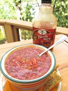 It was a long way to a grocery store and I had a lot of homegrown tomatoes and cukes. That’s when I discovered that Bloody Mary mix makes a pretty decent gazpacho base.