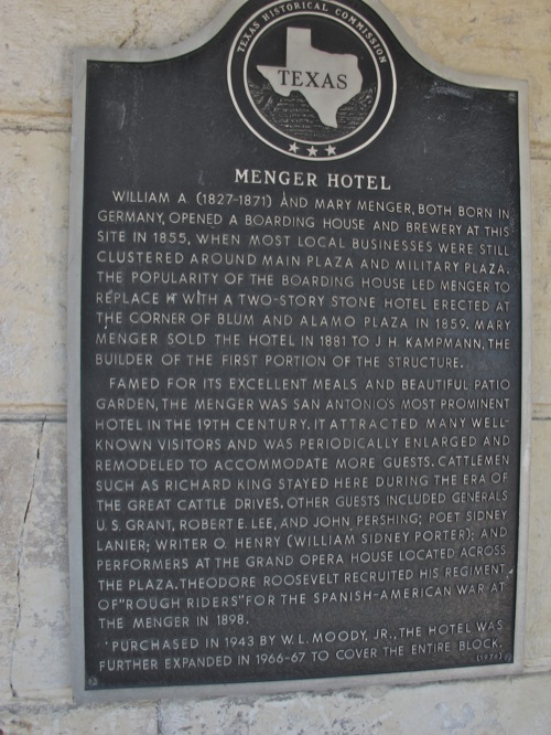 The Menger boasted the best fine dining restaurant in the state from the time the hotel opened in 1859. The early chefs were German and Croatian and their specialties were European pastries and wild game. The deer, wild turkeys and quail were hung from the cottonwood trees in the hotel’s courtyard in the days before refrigeration.