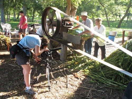 On such operation was a farm near Sweet Home where a Czech family still makes sorghum syrup the old-fashioned way using one of a handful of syrup mills still in operation. Foodways Texas founding member Morgan Weber took photos of the place a few months ago and Foodways Texas executive director Marvin Bendele quickly recruited Austin filmmaker Keeley Steenson to make a video while the syrup making was still going on. Keely spent several days shooting the harvest of the sorghum, the milling of the canes and amazing spectacle of cooking the syrup in an outdoor pit. She also shot footage of the Czech community including the annual Praha picnic.