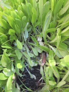 I thought the lamb’s tongue lettuce in my little backyard organic garden was doing great. Then the leaves all started falling over and dying. Then the the other lettuces on either side of the lamb’s tongue started shriveling. Thanks to my bad gardening practices, my lettuce crop was destroyed. I had to pull it all up.