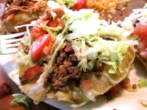 Puffy tacos have been on my mind a lot lately. A couple of days ago, I tried the incredibly fragile puffy tacos at Loma Linda on Telephone Road in Houston. They are quite tasty, but the stewed chicken version falls apart within minutes of hitting the table. The ground beef taco meat version offers a slightly longer window of dining opportunity, but both of these puffy tacos are very delicate. I am thinking these are made by frying a regular, fully-cooked corn tortilla in hot oil–just like the queso puffs.